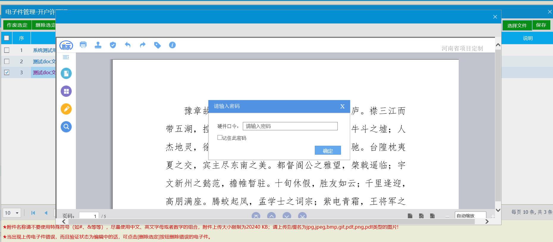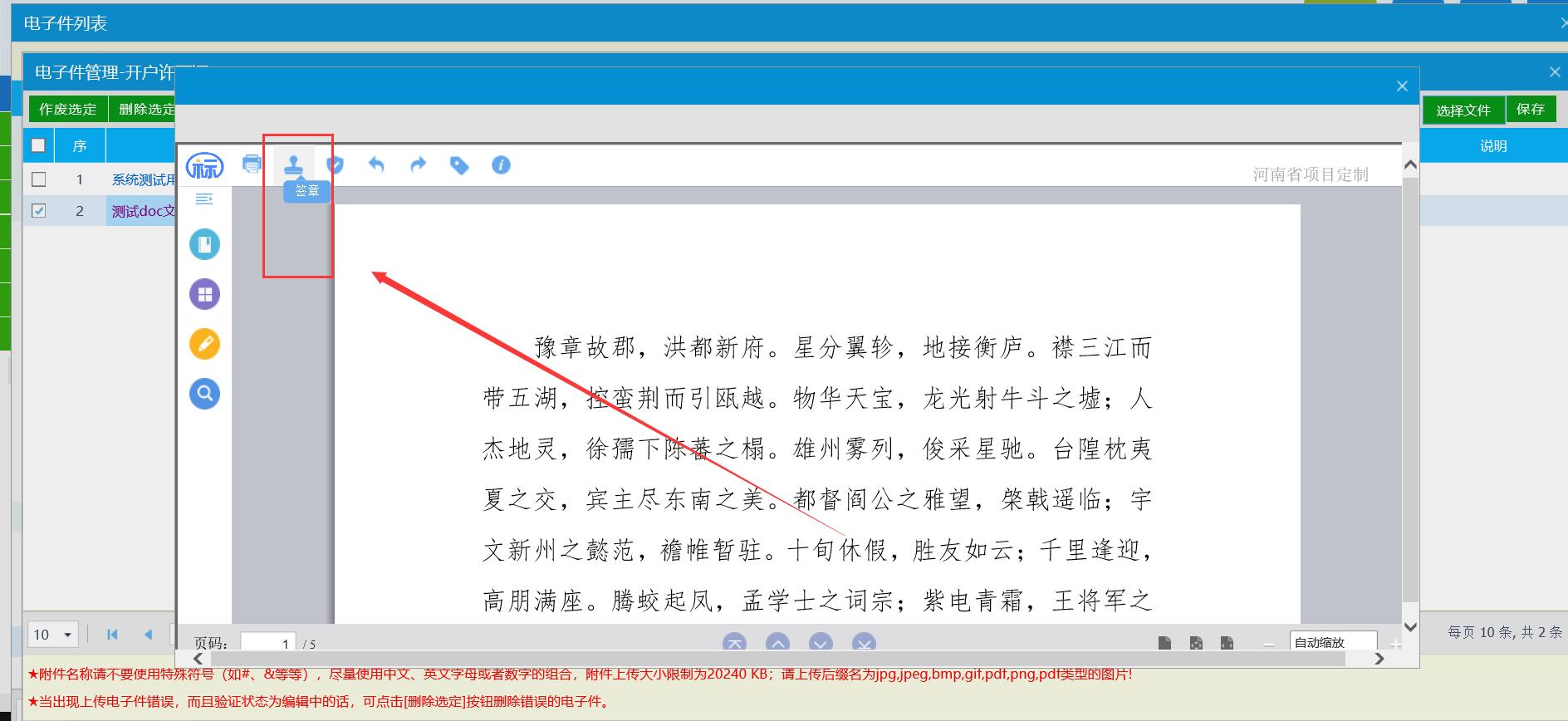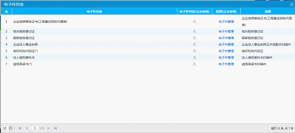 一、进入界面:点击【电子件管理】会弹出电子件列表,