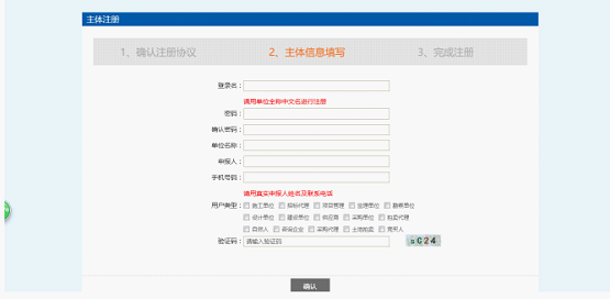 注:此时只是单位名称等身份类型信息注册,所有交易主体(除仅参加产权交易类业务的竞买人、自然人外)必须办理完CA数字证书后,再完善诚信库基本信息并提交信息入库。