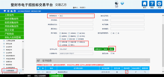 已办理CA证书的交易主体,在新增身份类型后,需要重新绑定CA证书中的交易主体身份。