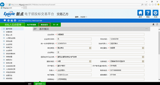注意:交易主体信息库中其他信息(如经营资质、职业人员、人员职业资格、企业业绩财务、获奖等)与基本信息修改方式类似,但交易中心不再进行一致性验证,修改提交后直接验证通过。
