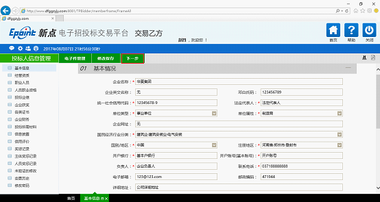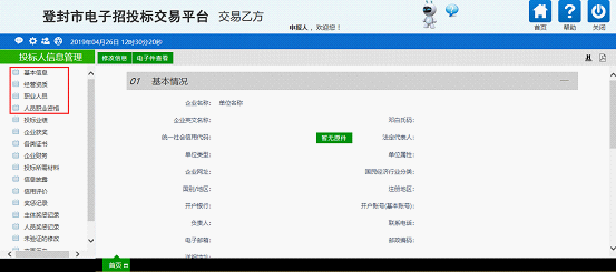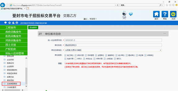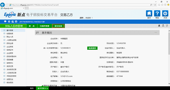 4.5.1、进入交易主体信息库管理,登记本单位基本信息、经营资质、职业人员等信息。