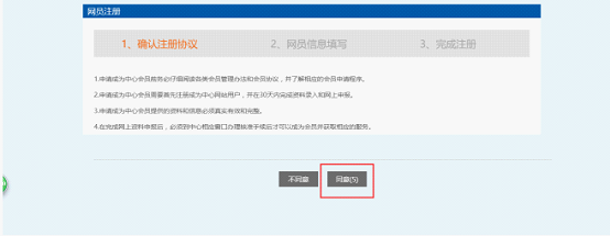 认真阅读注册协议后点击“同意”,进行下一步,如下图