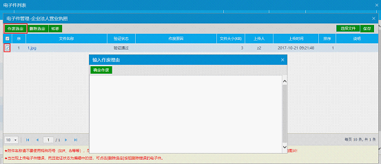 根据实际情况对本次信息变更所涉及的已经验证通过的原全部扫描件选择“作废选定”,进行作废。同时选择上传新的扫描件(若信息变更不涉及扫描件,可没有此环节)。
