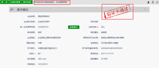 4.5.8、如果系统页面出现“验证不通过”标记,交易主体可通过左上方“点击查看原因”查看验证不通过原因。