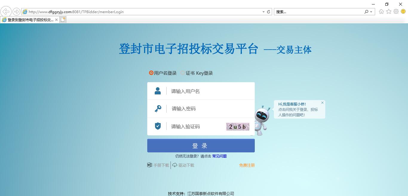 在交易中心网站点击交易主体登录按钮,打开会员系统登录页面,:http://dfggzyjy.dengfeng.gov.cn:8081/TPBidder,如下图