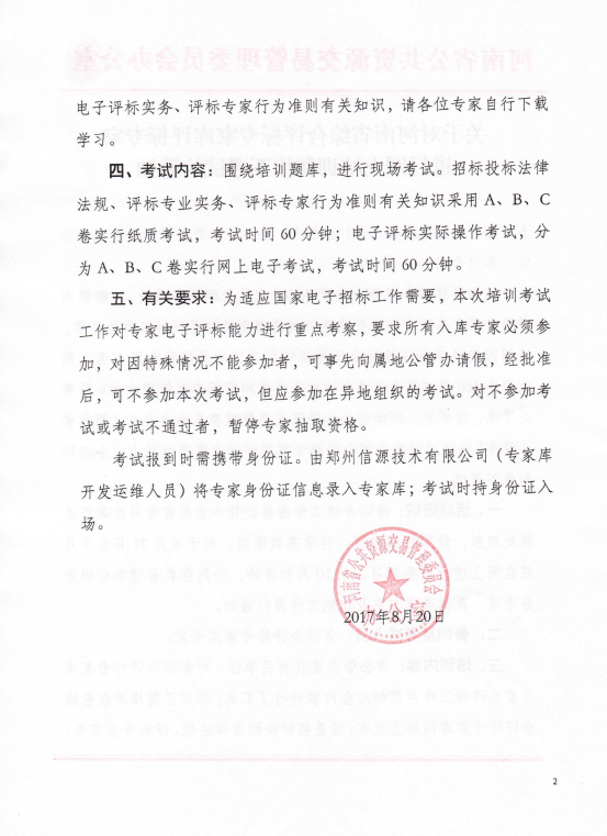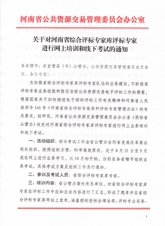 关于对河南省综合评标专家库评标专家进行网上培训和线下考试的通知